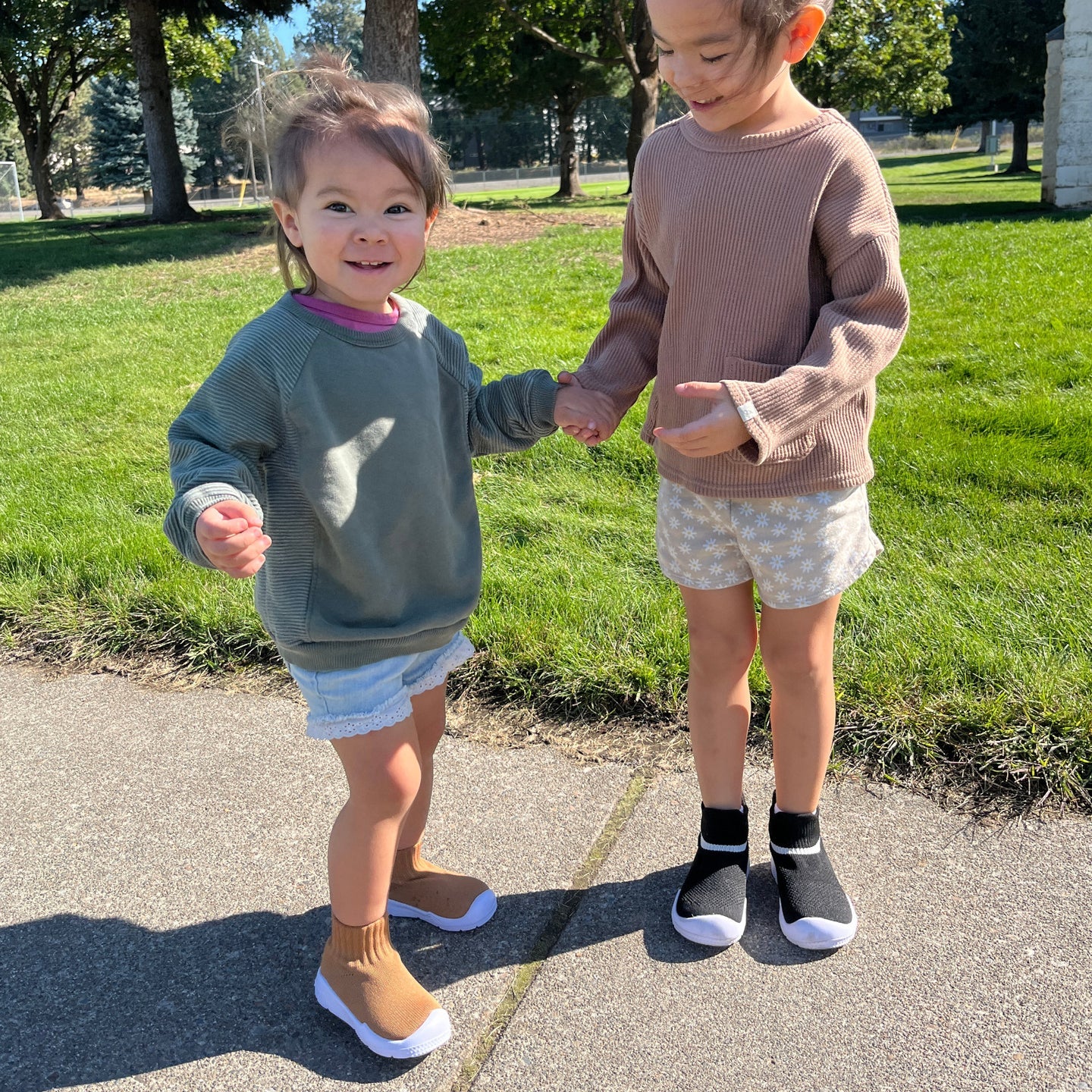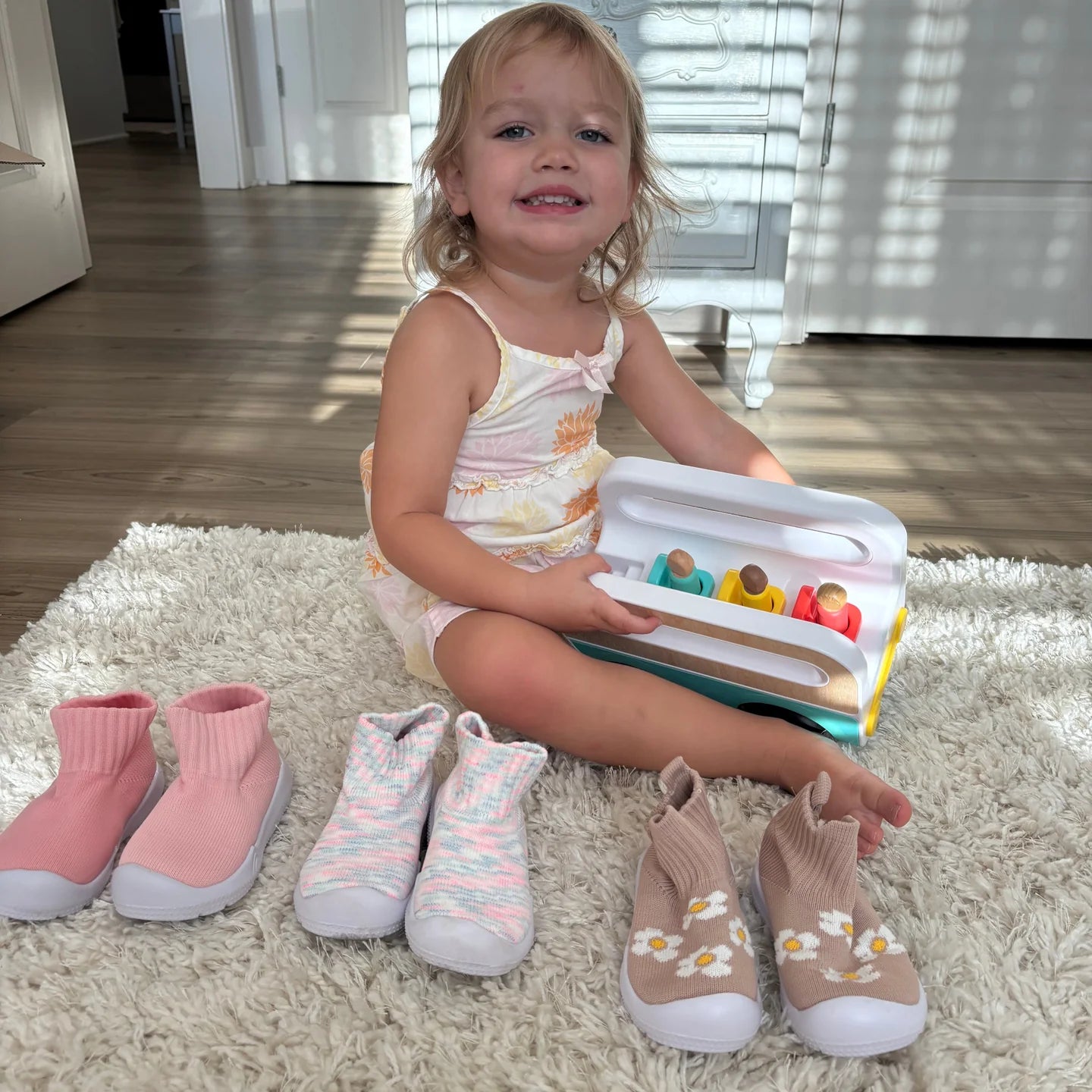 Enfilage ultra-facile. Plus de cris ou pleurs pour mettre les chaussures — elles s’enfilent en quelques secondes et restent bien en place grâce à leur design façon chaussette haute.